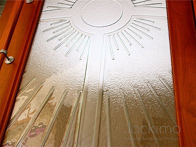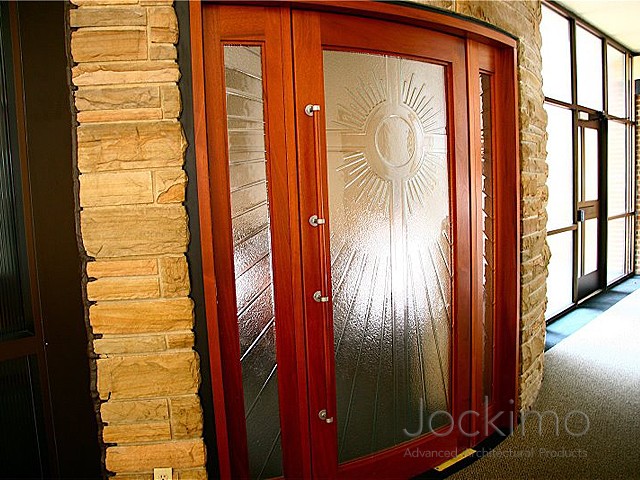 Our client, a Catholic church outside of Nashville, wanted to utilize our cast glass in their newly redesigned church. The design was provided by the church and Jockimo cast it into 3 panels. All glass is bent and tempered to fit the wood framed door/entry. The glass is part of a circular prayer room and in turn the glass had to be bent to fit the radius of the room.